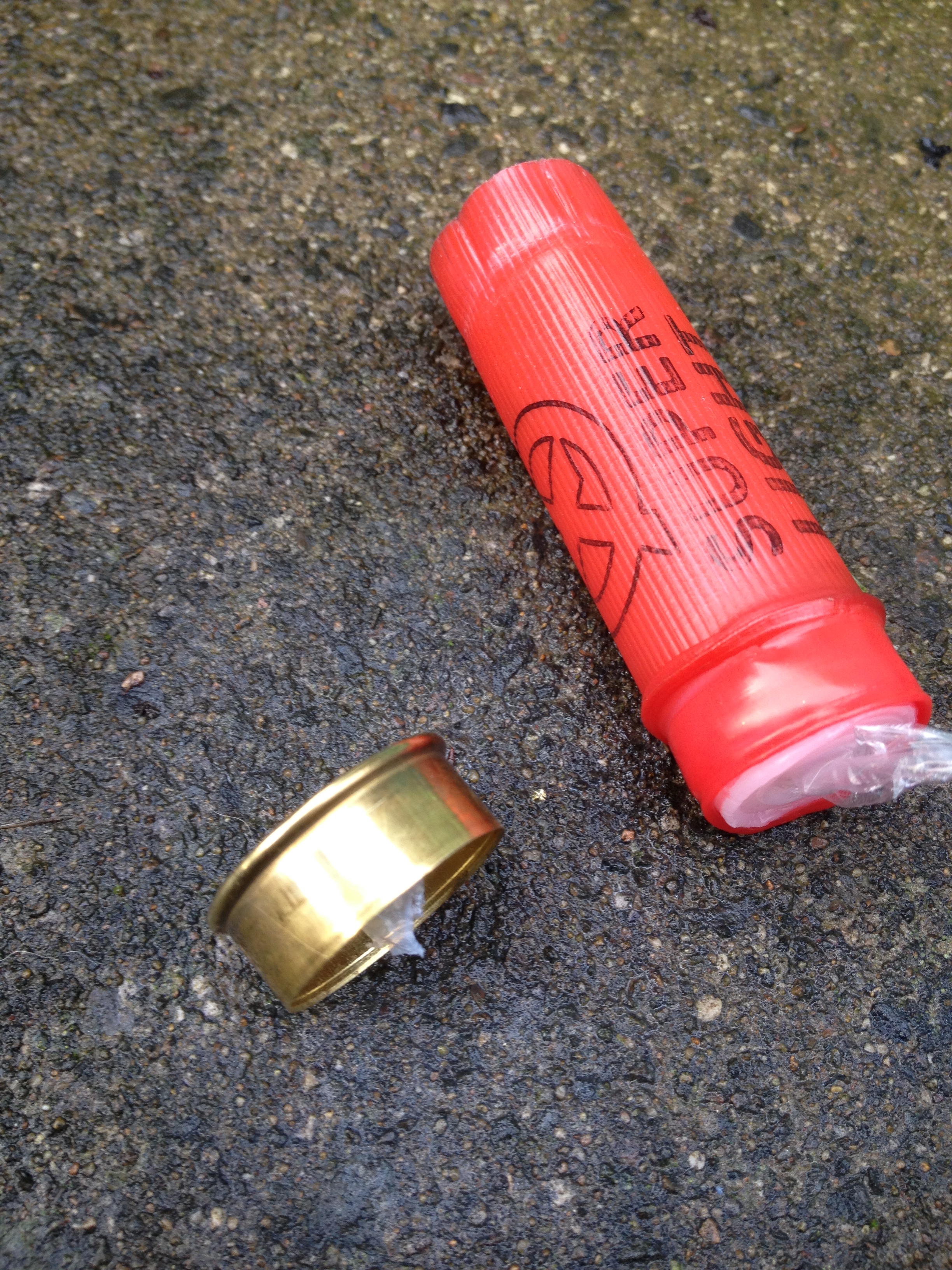 Take your first cartridge and heat the brass gently over a flame until the plastic starts to droop. Carefully grip the brass using something like pliers or a fire/heat proof glove (I used a rag soaked in water) and pull away from the plastic.